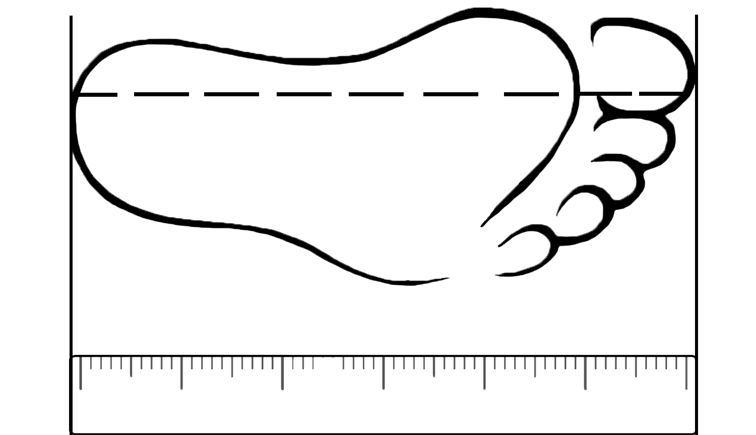 Rita en linje framför den längsta tån och mät avståndet mellan kanten på pappret och linjen.