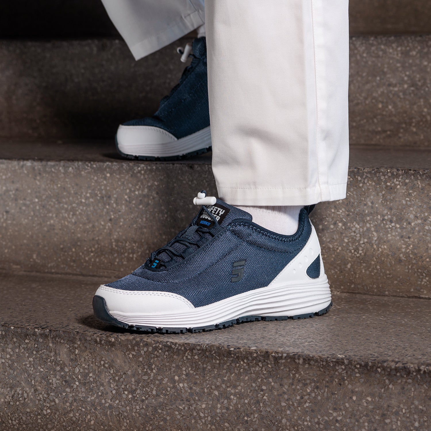 SRA-märkta skor menas med att sulan ska klara halktest på keramiskt kakel.